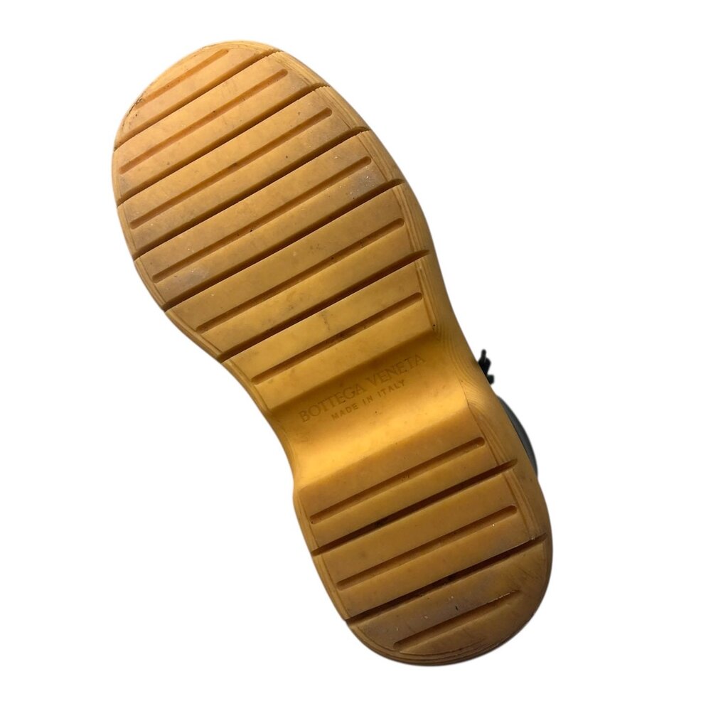 The Bottega Veneta Combat Boots blend utilitarian edge with refined Italian craftsmanship, featuring a chunky lug sole and sleek leather construction. Their modern silhouette adds a bold, fashion-forward finish to everything from tailored trousers to casual denim.